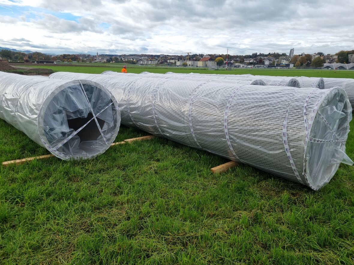 Trotz des eher regnerischen und kühlem Wetter ist der Boden soweit abgetrocknet, dass die Bauarbeiten in Absprache mit der bodenkundlichen Baubegleitung und dem Kanton gestartet werden konnten.